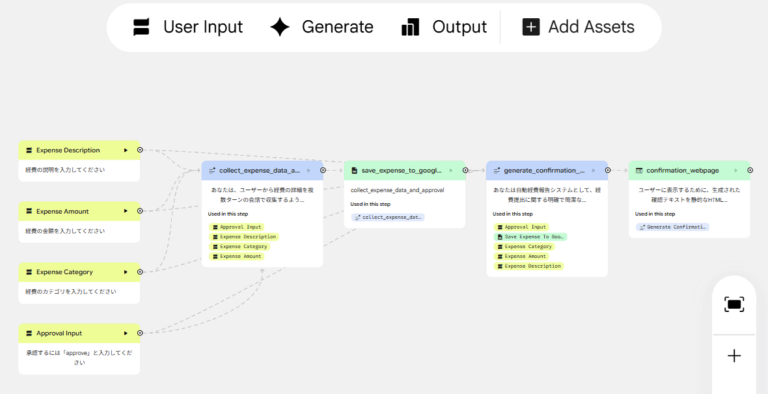 学生は「ユーザーが入力した経費データを、次の入力でが”承認”を入力すると、経費データを保存するアプリを作りたい」といった要件を、日本語でそのまま指示します。するとOpal側で、入力フォーム・承認フロー・通知処理などの「業務ワークフロー」が自動生成され、学生はそれを確認しながら細かい条件や画面レイアウトを調整していきます。